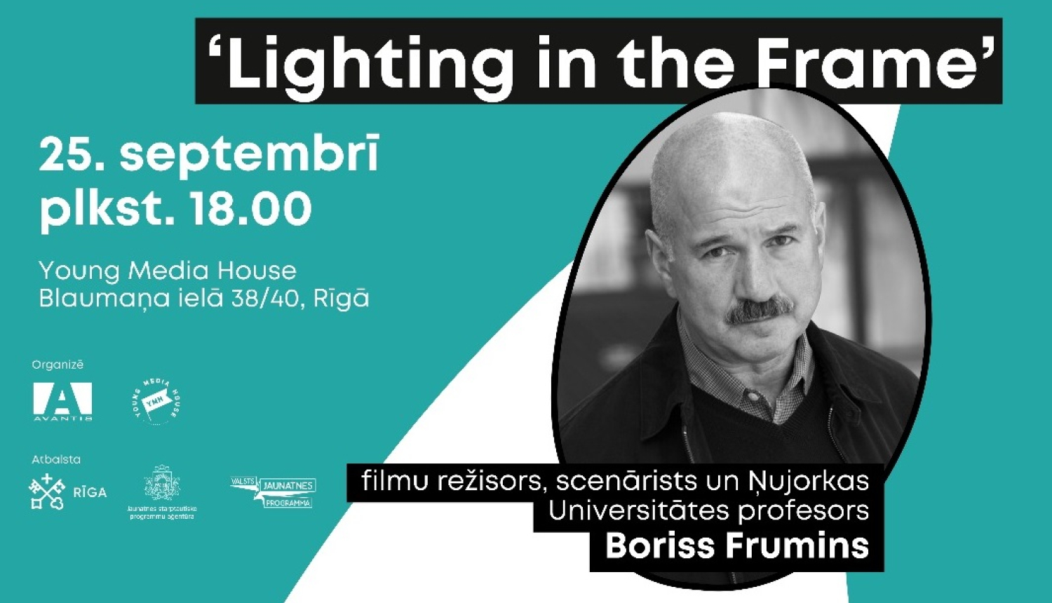Pateicoties negaidīti lielajai jauniešu atsaucībai un interesei par dokumentālā kino veidošanu “Docu-Edu Tour” tūres laikā, organizācija “Avantis” piedāvā starptautiski pazīstamā režisora, Ņujorkas universitātes pasniedzēja un producenta Borisa Frumina meistarklasi “Apgaismojums kadrā / Lighting in the frame”, kas notiks 25. septembrī 18:00 “Young Media House” telpās Rīgā, Blaumaņa ielā 38/40.